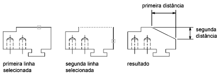 Para chanfrar um canto especificando distâncias (Conjunto de ferramentas do AutoCAD Mechanical)
