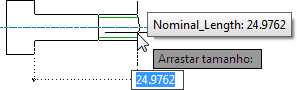 Também é possível definir os valores mínimos e máximos para uma cota que pode ser arrastada. O uso deste recurso permite restringir o arraste a um limite definido. Por exemplo, o comprimento da rosca de um parafuso.
