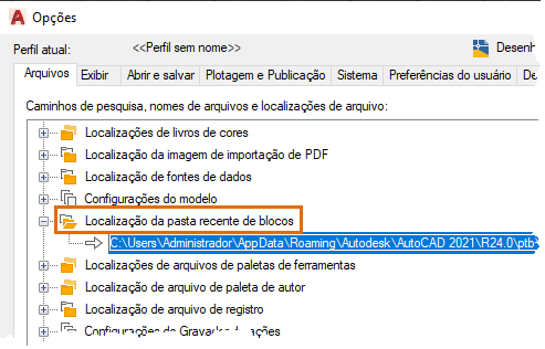 BLOCKSRECENTFOLDER – Define o caminho onde os blocos inseridos ou criados recentemente são armazenados.