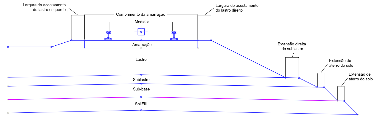 | Extensão da sub-base | Distância da ponta do material de sublastro ao início da inclinação lateral do material de sub-base | Numérico, não negativo |