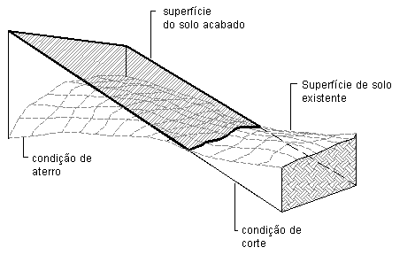 O método de volume composto utiliza os pontos de duas superfícies, bem como qualquer localização onde as bordas do triângulo entre as duas superfícies se cruzam. O corte, aterro e os volumes líquidos são calculados com base nas diferenças de elevação entre as duas superfícies.