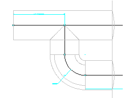- Adicione o caminho para o cotovelo curvo. Quando a caixa de diálogo Inserir o número de segmentos do caminho for exibida, verifique se “Não segmentar caminho” está marcada e clique em OK. Em seguida, adicione o modificador de caminho para o segmento vertical da tubulação de queda. Utilize o perfil Diâmetro da tubulação de queda.