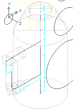 - Repita o comando Adicionar caminho para os outros três segmentos de linha. Utilize o perfil Diâmetro cilíndrico do barril para os perfis inicial e final para cada um dos três segmentos. Altere a vista para Isométrico SE para ver a peça em 3D. Altere a visão novamente para Direita.