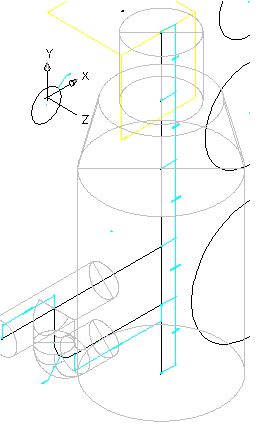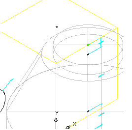 Coincidente. Clique no ponto superior do eixo vertical e clique no ponto de referência criado na etapa anterior. Toda a estrutura se move para cima para que a elevação da Tampa do dispositivo corresponda com o plano de trabalho superior.