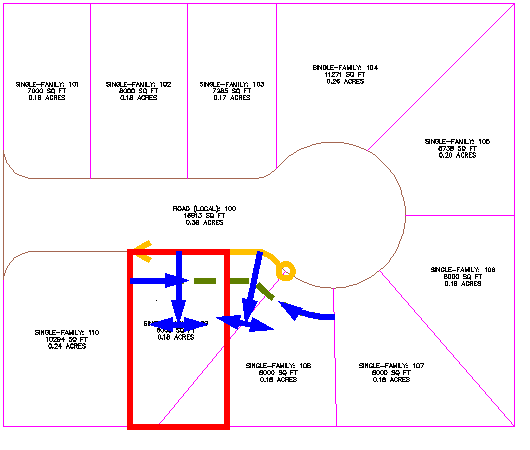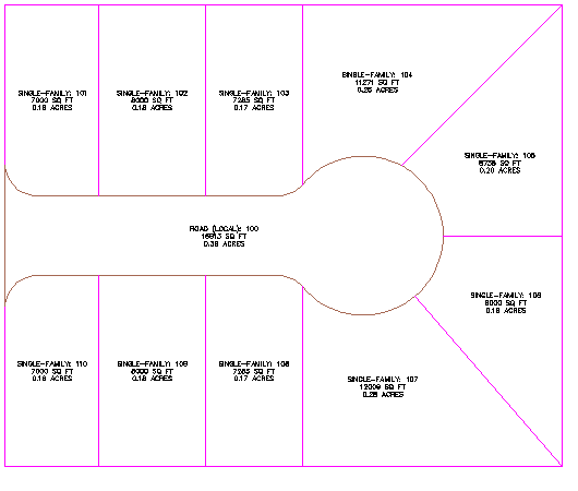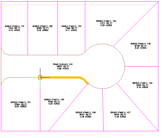 Exploração adicional: Utilize as etapas de 3 a 8 para mover as linhas do lote que estão entre os lotes 108, 109 e 110 para corresponder com o layout dos lotes 101, 102 e 103.
