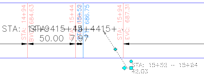 As faixas de dados na parte inferior de gráfico do perfil longitudinal PV - (3) anota a geometria horizontal e vertical do alinhamento proposto da estrada e a elevação de cada perfil nas estacas principais.