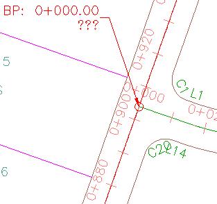 • Estilo de legenda de ponto da geometria: Elevação de superfície na estaca do alinhamento