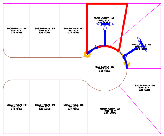 No desenho, clique na linha de lote que esteja entre os lotes 104 e 105.