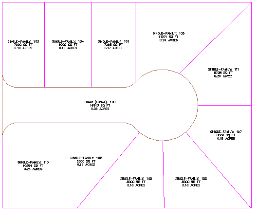 No desenho, selecione a legenda da área do lote grande no canto nordeste do terreno.