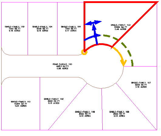 Especifique os pontos inicial e final da testada do lote, conforme mostrado na imagem a seguir.
