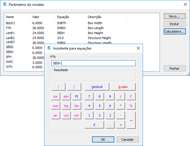 - Dê um duplo clique no valor da coluna Equação para obter um parâmetro modelo (tal como LenB1), e você poderá inserir um valor ou uma equação para especificar o comprimento da peça.