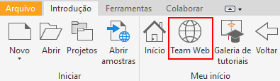 Após definir as Opções do aplicativo, você pode iniciar o Team Web em dois locais: