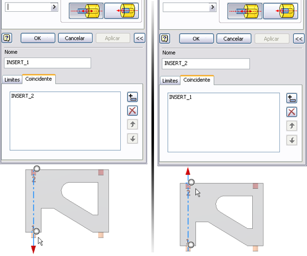 - Crie uma restrição de inserção de iMate chamada Insert_2 no Furo 2. Amplie a caixa de diálogo e crie a coincidência preferida (Insert_1) como a primeira entrada na lista correspondente.