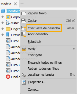 | Em um arquivo de peça ou de montagem (montagem não está disponível no Inventor LT): Clique com o botão direito do mouse no nome do arquivo no navegador e selecione Criar vista de desenho. A caixa de diálogo Criar novo arquivo é exibida. | Para abrir standard.idw (Usar modelo), clique em Criar. Também é possível clicar duas vezes em um modelo para abri-lo. |