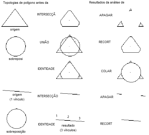 Operações de colar a sobreposição da topologia de polígono no topo dos polígonos de origem. Os polígonos de origem não cobertos pela sobreposição permanecem. A opção Colar só pode ser utilizada com polígonos.
