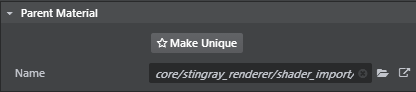 The properties available in the Property Editor for editing a child material are determined by the shader graph of its parent material. For example, the 3ds Max Interactive physically-based shader graph provides the Standard material properties.