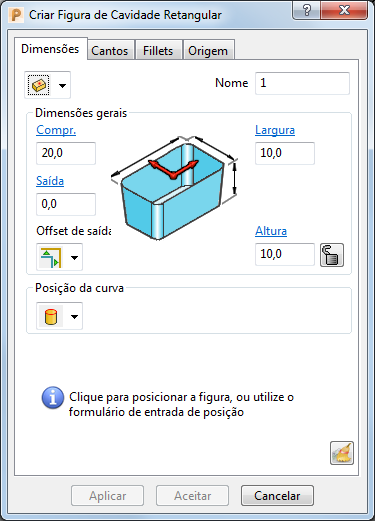 O diálogo Criar Figura de Cavidade Retangular é exibido.