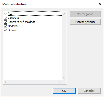 Selecione cada material que deseja exibir e clique em OK. Eles são todos selecionados por padrão.
