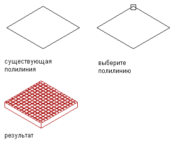 | нижнюю часть перекрытия/ската крыши с полилинией (или с базовой высотой, если используется режим "В проекции"), | введите b (снизу). |