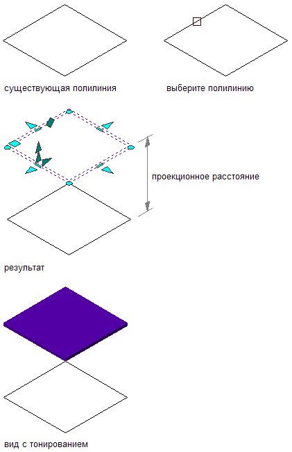 Преобразование полилинии в перекрытие в режиме "В проекции"