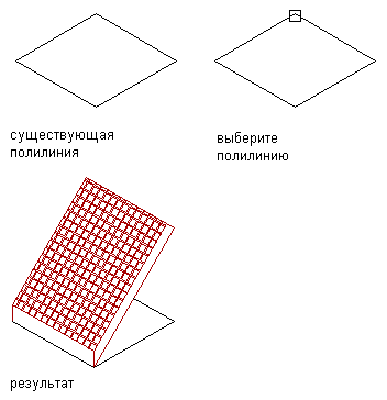 Преобразование полилинии в скат крыши при использовании непосредственного режима и добавлении угла наклона