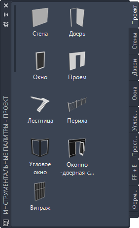 Инструменты проемов со свойствами, настроенными в соответствии с проектами или административными стандартами, могут также находиться на пользовательских палитрах, созданных администратором САПР или другими пользователями.
