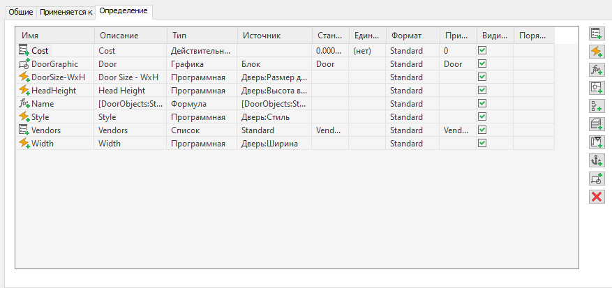 Программные характеристики могут быть динамически получены из объекта. Большинство характеристик, вносимых автоматических, должно быть внесено в определение набора характеристик на базе стилей даже в том случае, если значения меняются для каждого объекта. Например, характеристики "Ширина двери" и "Высота двери" извлекаются автоматически из объектов-дверей. Внесение этих характеристик в определение набора характеристик на базе стилей дает значение для каждого объекта-двери этого стиля и является более эффективным, чем внесение их в определение набора характеристик на базе объектов, которые прикрепляются к каждой двери.