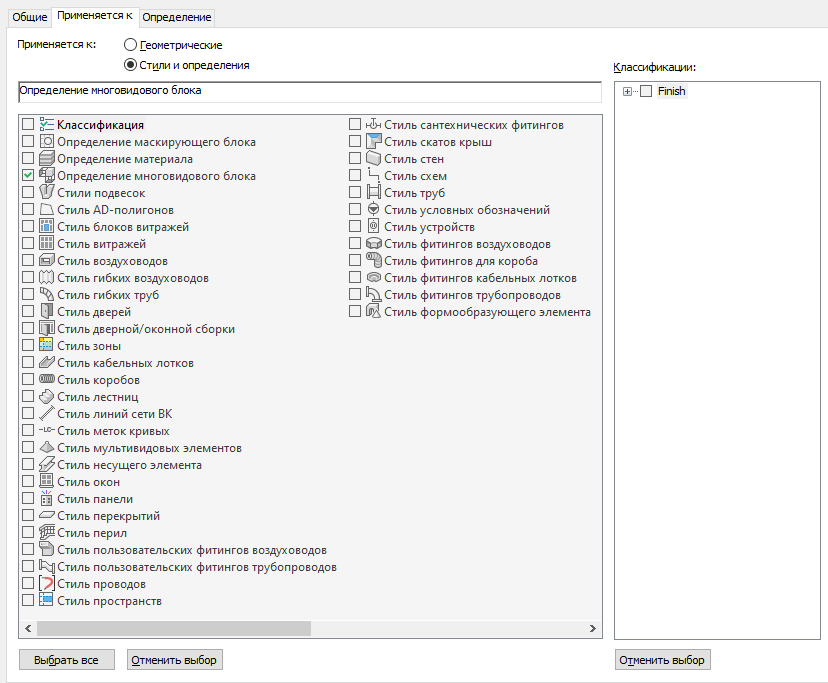 Характеристики, введенные вручную, которые совпадают для всех экземпляров стиля, находятся в определении набора характеристик на основе стиля и применяются к стилю (например стилю стены) или определению (например определению многовидового блока).
