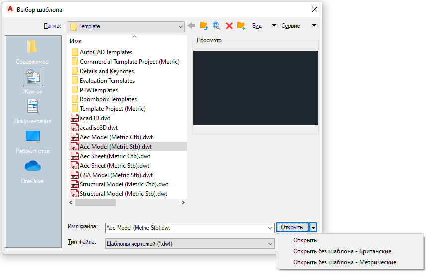 - Начать работу в новом чертеже. Вместо обращения к команде БСОЗДАТЬ, загружающей шаблон, воспользоваться командой НОВЫЙ и выбрать из раскрывающегося списка "Открытие файла" "Открыть без шаблона - Британские".