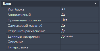 - В палитре свойств в группе "Блок" выберите "Да" для параметра "Аннотативный".