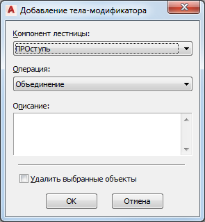 На следующем рисунке показано, как использовать формообразующий элемент в качестве тела-модификатора для его добавления к компоненту несущей конструкции лестницы.