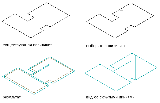 - Постройте замкнутую 2D полилинию с формой предполагаемой крыши в необходимом месте ее расположения.