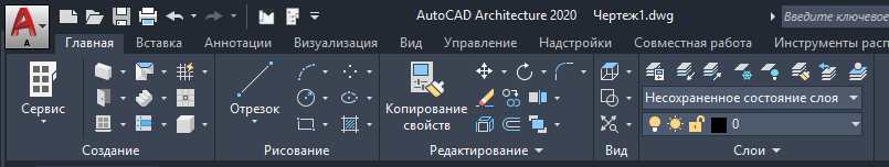 В AutoCAD Architecture 2021 toolset существует одно отдельное стандартное рабочее пространство («Архитектура»). Меню и команды, связанные с рабочими пространствами из предыдущих версий — "Проект", "Документ", "Детализация" и "Визуализация", — доступны на вкладках ленты.