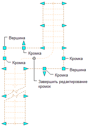 Ручки "Кромка", "Вершина" и "Прекратить редактирование сегментов" для площадки многомаршевой лестницы