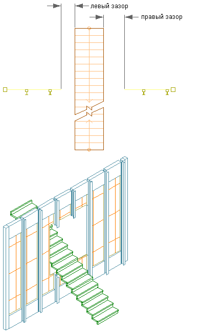 задать левый и правый зазор для вырезающих элементов одномаршевых и многомаршевых лестниц, введите значения левого и правого зазора.