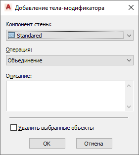 4. В диалоговом окне "Добавление тела-модификатора" укажите следующие параметры:
