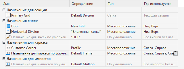При создании назначения для каркаса необходимо указывать кромки каркаса, где используется это назначение.