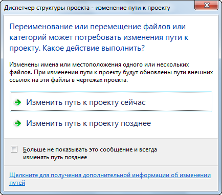 | обновить все файлы проекта немедленно, | щелкните на "Изменить путь к проекту сейчас". |