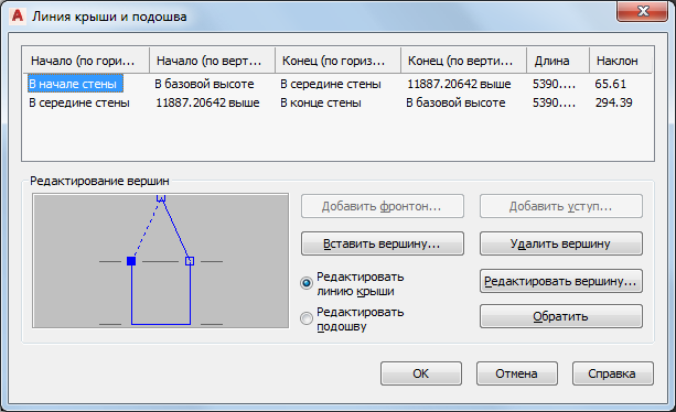 Данная процедура предназначена для того, чтобы добавить фронтон к линии крыши витража путем добавления вершины в линию крыши.