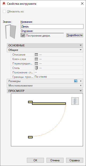 Окно "Просмотр объектов" на вкладке "Свойства инструмента"