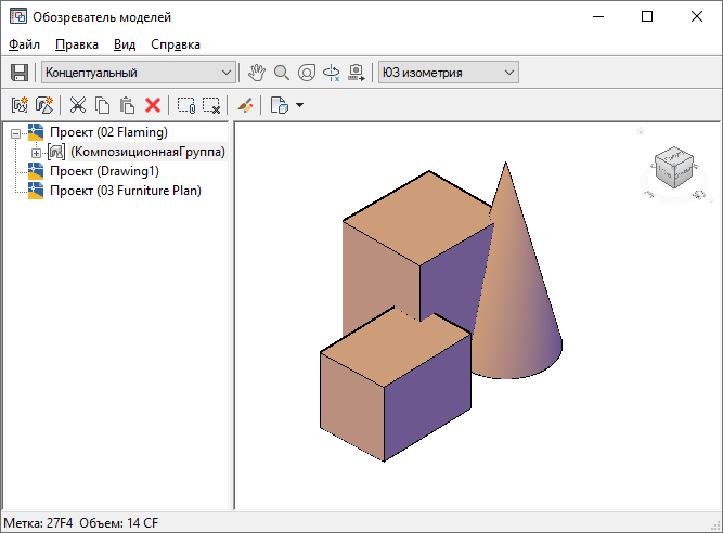Обозреватель моделей - это окно, в котором пользователь создает формообразующие элементы и композиционные группы, выполняет их просмотр и операции с ними. Обозреватель моделей использует функцию "Просмотр объектов" для предоставления возможности предварительного просмотра выполняемых операций с формообразующими моделями и композиционными группами.