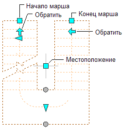 Ручки "Начало и конец марша", "Обратить" и "Местоположение" для П-образной лестницы