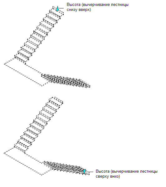 Использование ручек иллюстрируется приведенными ниже чертежами и поэтапным описанием процедуры редактирования П-образных лестниц.