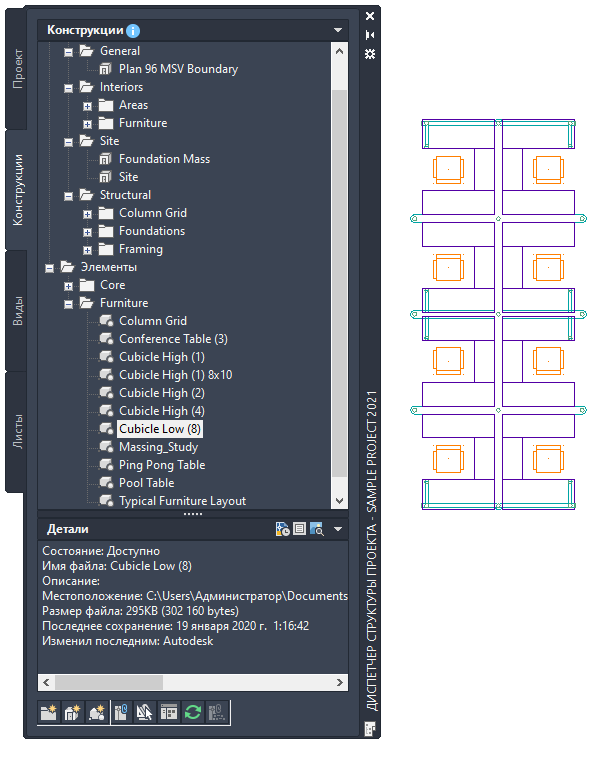 Элемент открывается в области рисования AutoCAD Architecture 2021 toolset. Теперь его можно отредактировать.