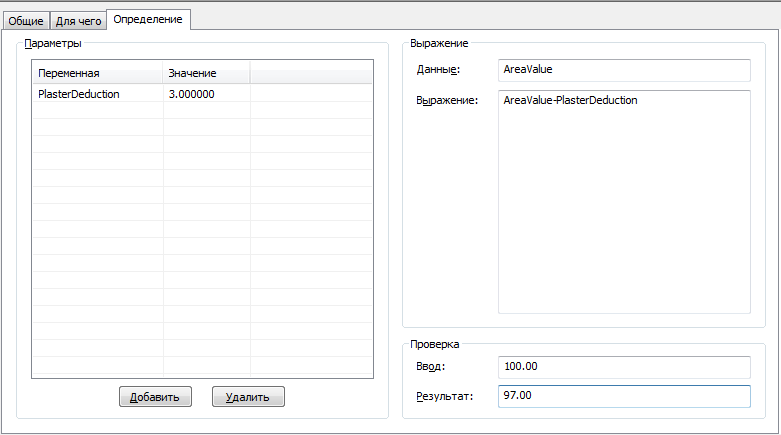4. Для применения операции пересчета к границе в чистоте, полезной или общей границам пространства создайте и примените описание набора характеристик, в котором бы содержались свойства для значений учитываемой площади и периметра соответствующих границ.