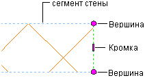 При редактировании торцов стен и при создании требуемых условий для них можно использовать ручки контекстного редактирования. Ручки вершин и кромок отображаются для всех компонентов стен на указываемом торце.