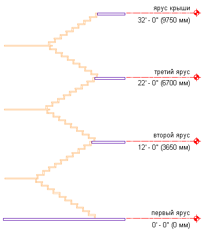 Задание экранных свойств лестницы на разных уровнях