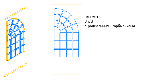 Остекление двери в форме четверти круга с солнцеобразной сеткой горбыльков и замкнутым сердечником