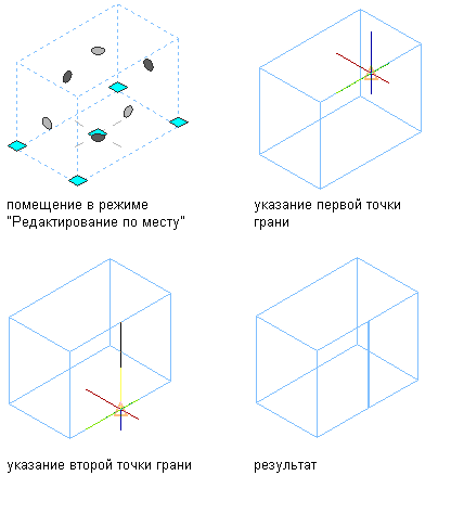 Можно разделить поверхности 3D пространства произвольной формы. Это удобно, если требуется изменить геометрию только части поверхности пространства, например, при создании кабельного канала в потолке пространства.