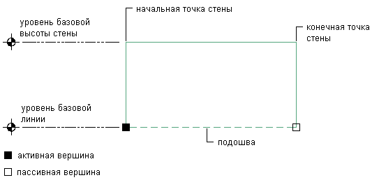 Можно изменять линии крыши и подошвы стены таким образом, чтобы создать стену формы, отличной от прямоугольной.
